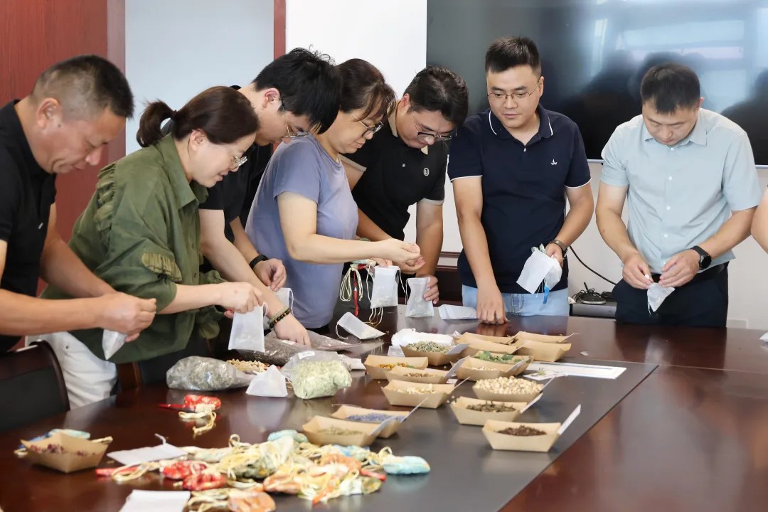 在中草藥香囊制作環(huán)節(jié),大家紛紛動手,將艾葉、丁香、白芷、藿香等具有安神、驅(qū)蚊、防疫功效的藥材,細心裝入繡有 “祥云”“桂花” 等元素的定制香囊袋中。小小的香囊,方寸之間,承載的不僅是天然芬芳的中草藥,更是職工們對健康生活的向往、對親友的深情牽掛以及對家國美滿團圓的誠摯祝福。
